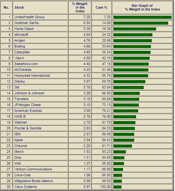 DJIA 30(The Dow Jones Industrial Average): is a stock market index that measures the stock performance of 30 large companies listed on stock exchanges in the United States: Dow Component