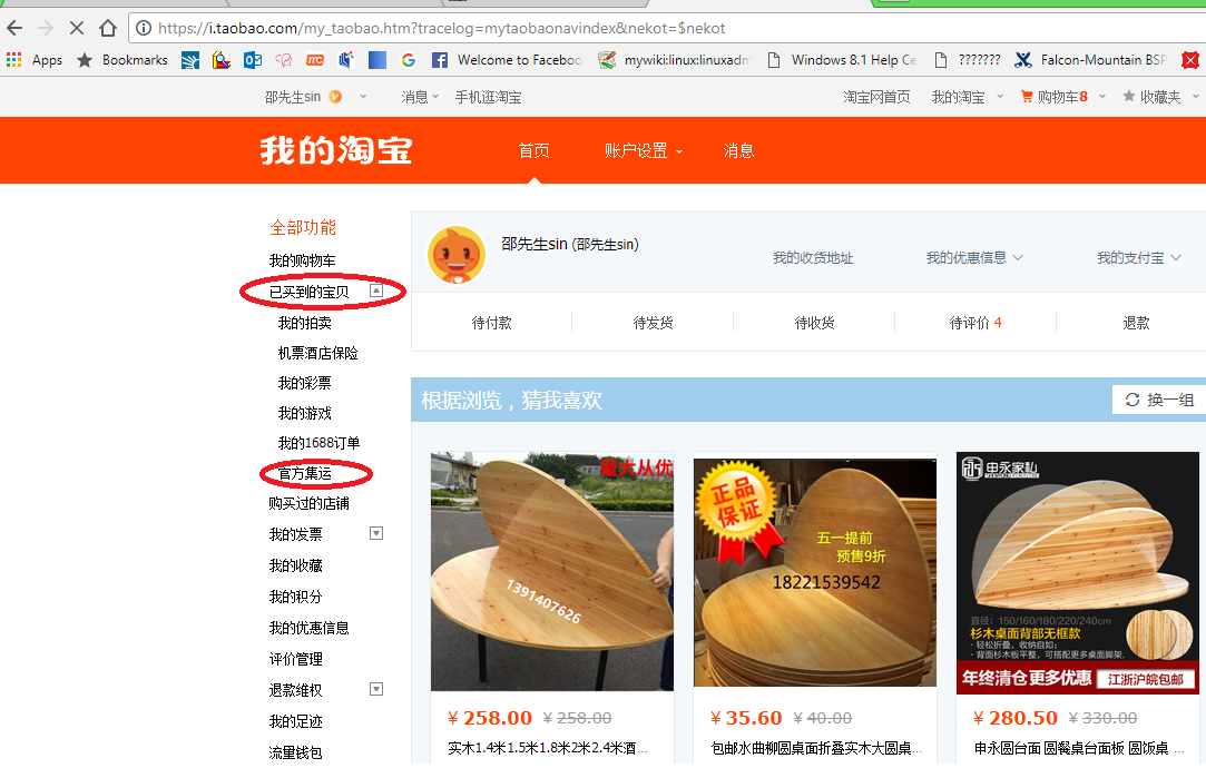 上部菜单选择:我的淘宝 -> 已买到的宝贝
